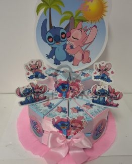 Картонена торта с лакомства – Стич (Розова)