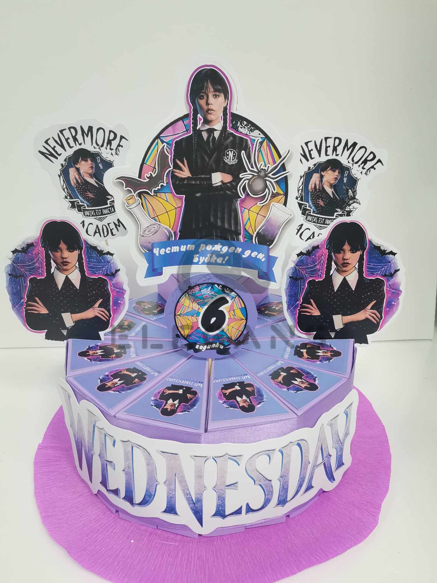 Картонени торти за празника на Вашето детенце на тема Wednesday.