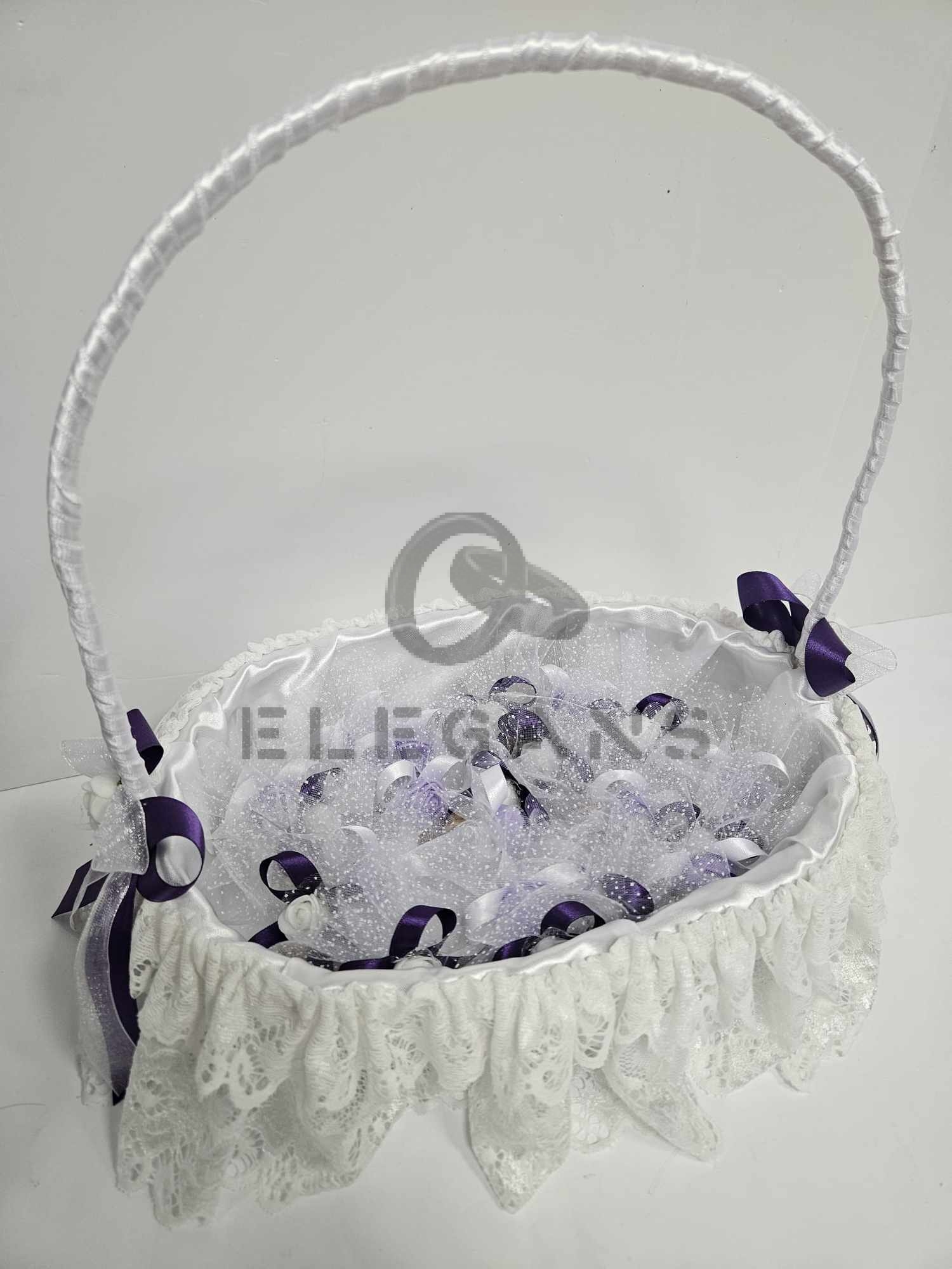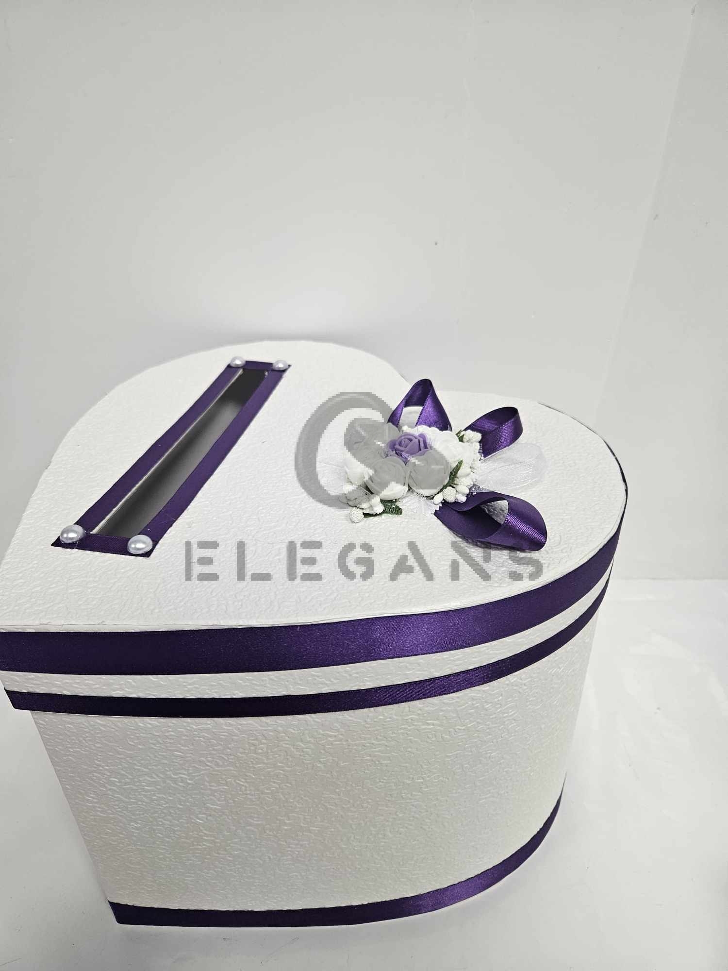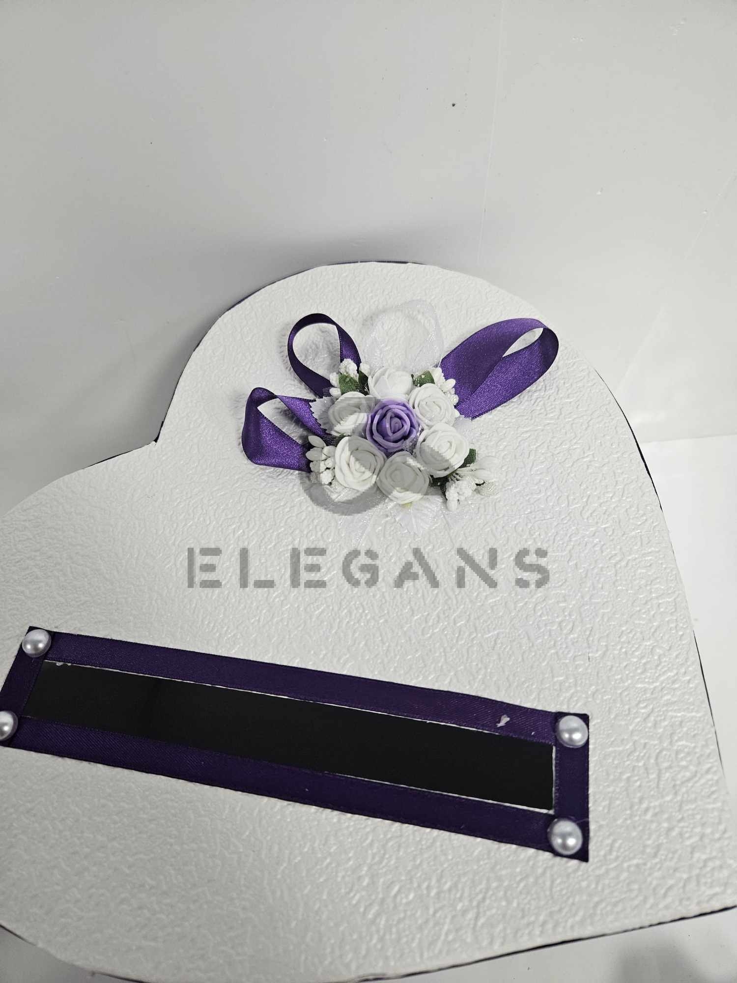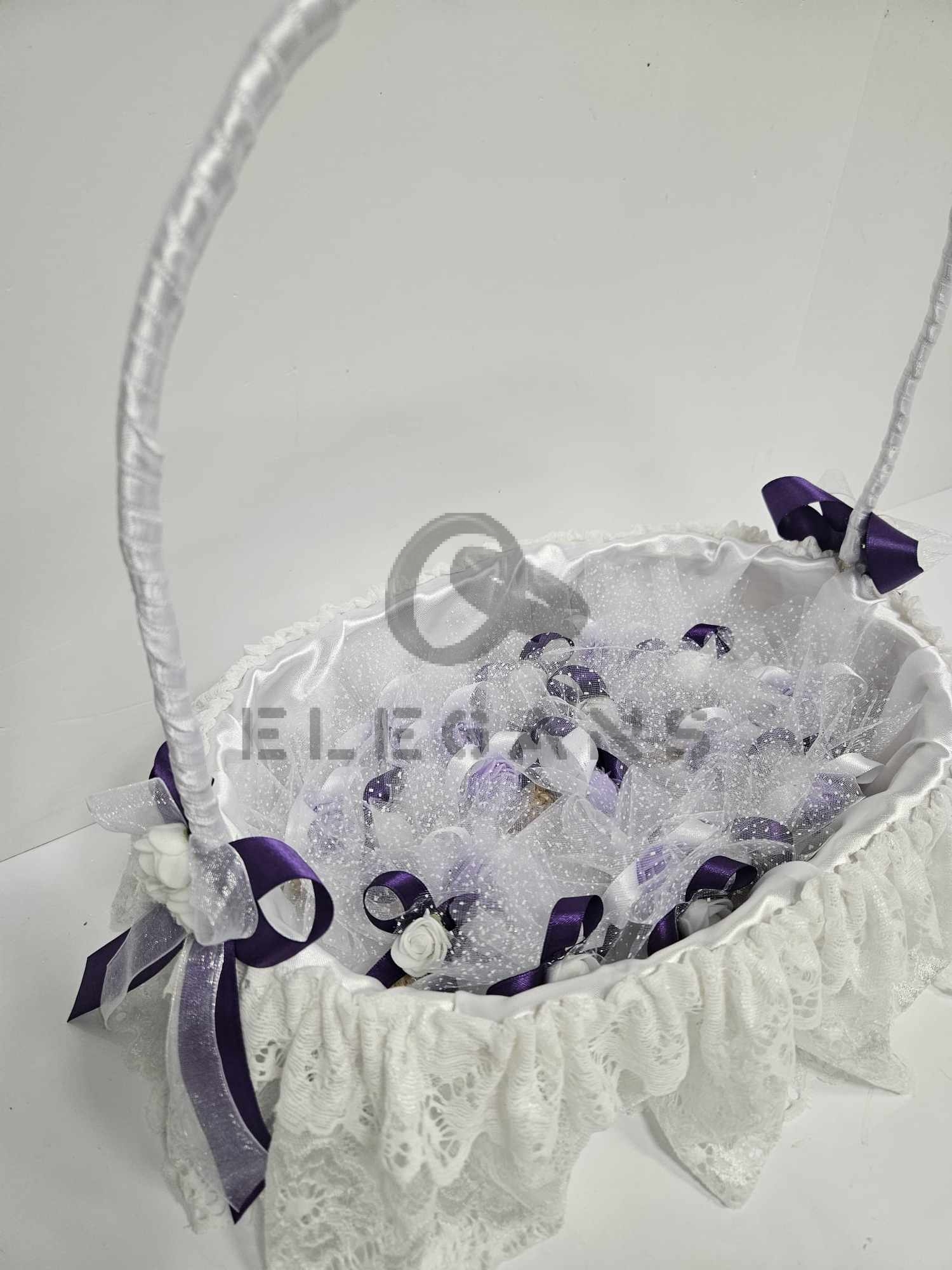Сватбен комплект в бяло и тъмно лилаво, включващ:
