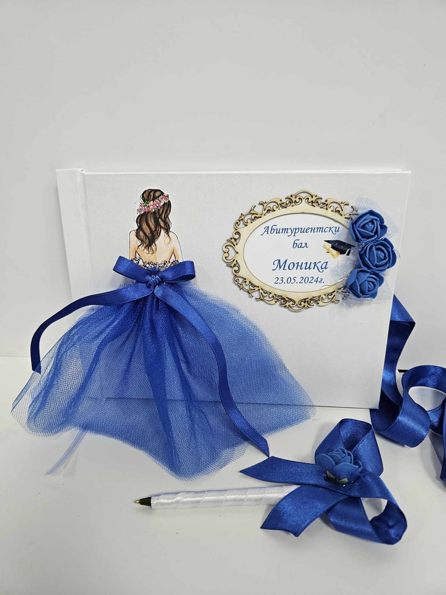 Книга за пожелания в бялo и тъмно синьо. Надписът е по Ваш избор.
