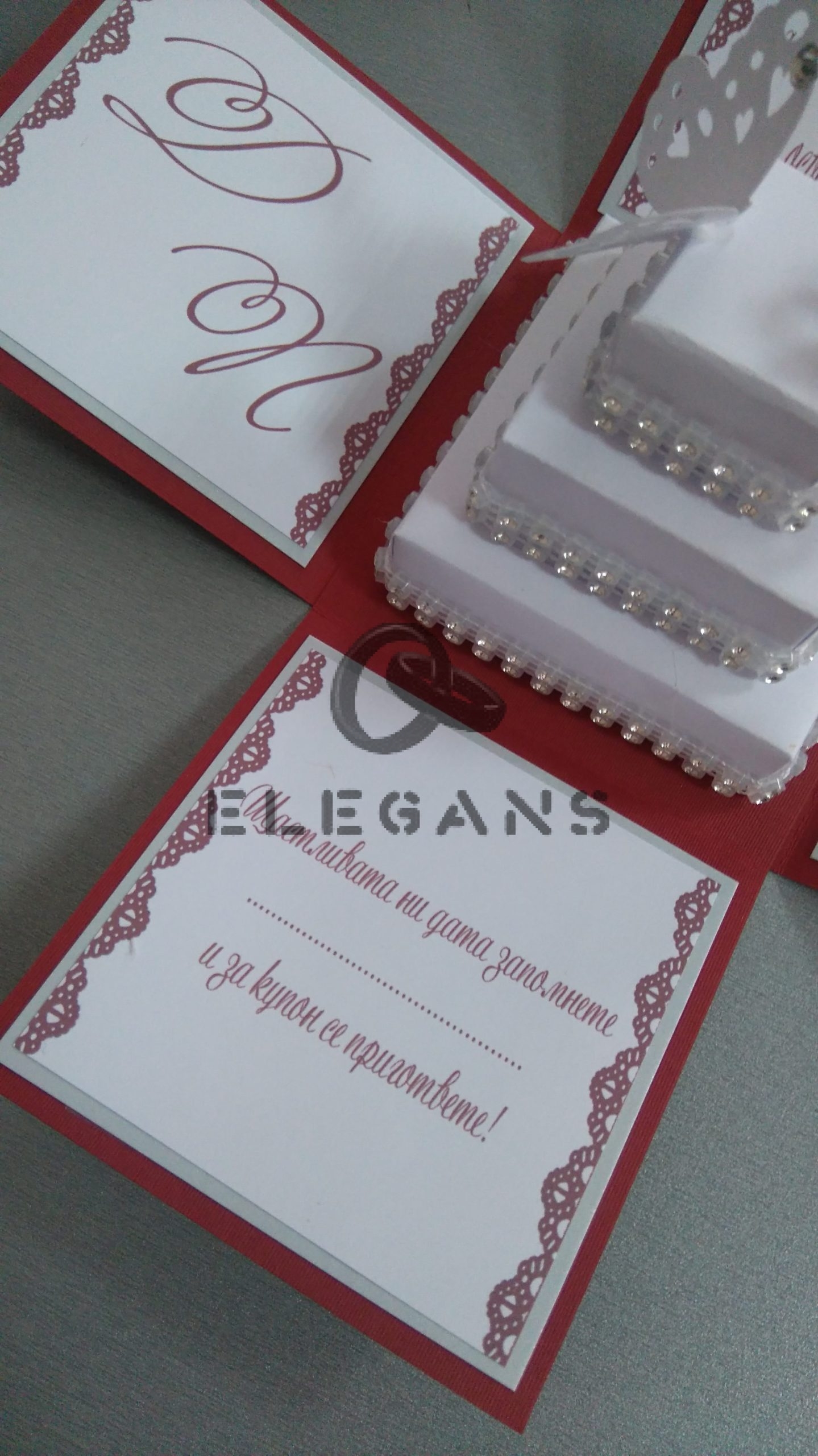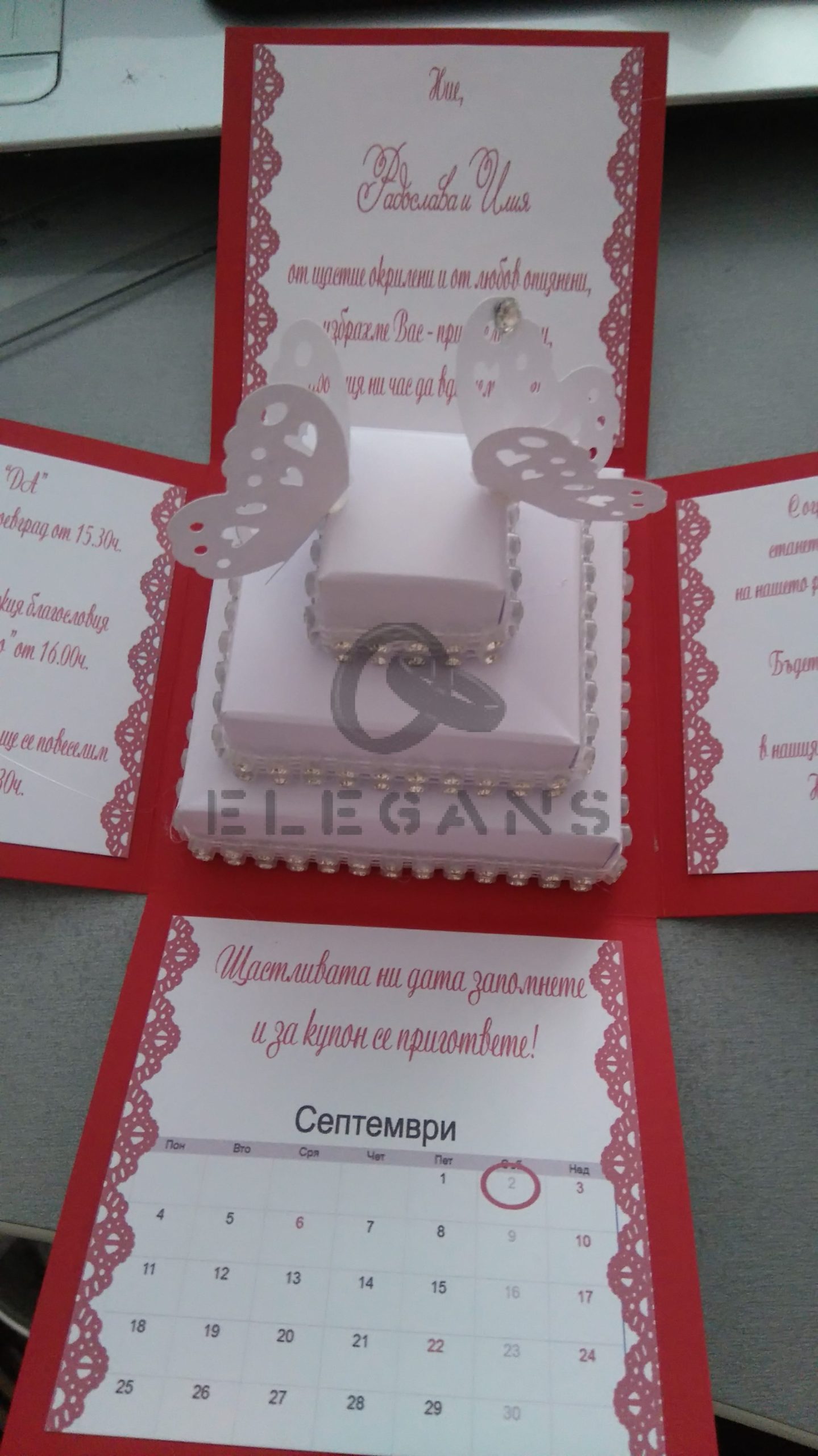 Цветовете на материалите могат да бъдат променени, както и текстът на поканата.
