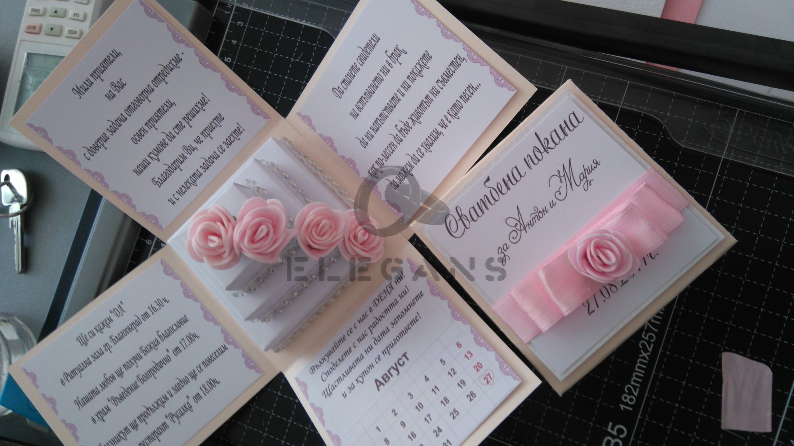Ръчно изработена покана за сватба за кумове и родители.