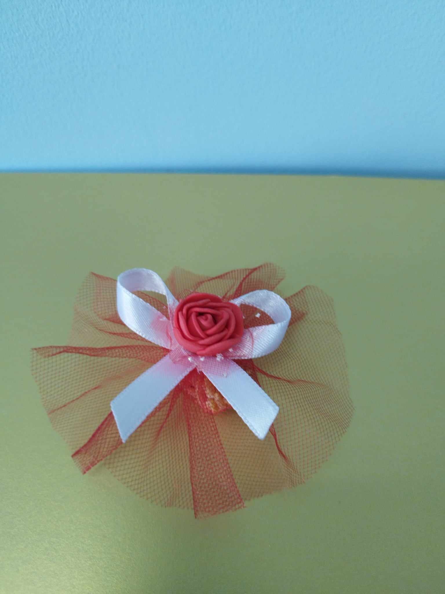 Сватбени късмети за хвърляне с цветен тюл, сатенена панделка и роза.